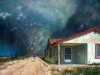 존 브로시오는 토네이도가 근접한 순간과 확대된 새, 게, 공룡이 이질적으로 공존하고 있는 그림으로 유명해요. 마치 큰 사건이 생기기 전, 공포영화의 한 장면 같은 느낌이예요. 한편으로는 기후와 지구에 대한 생각으로 이어지면서, 역설적이게 유머스럽기도 하구요.